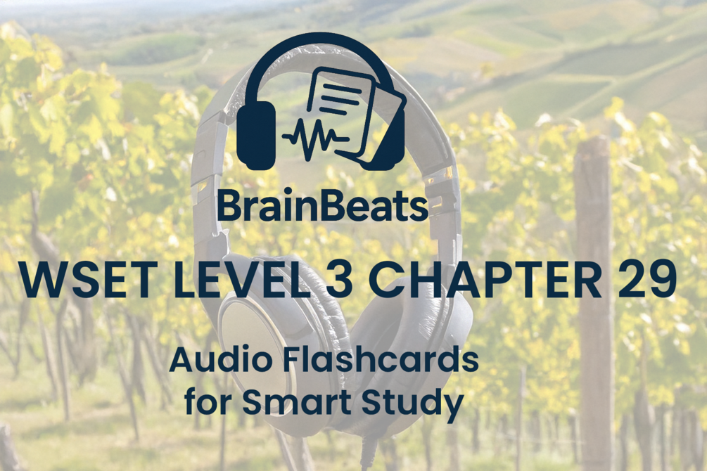 You’ll get an audio-first flashcard pack for Chapter 29 of WSET Level 3, featuring 25 questions that cover Southern Italy’s main wine-producing regions, native grape varieties like Aglianico, Fiano, and Greco, and regional classification systems. Includes printable flashcards and a targeted learning sheet.