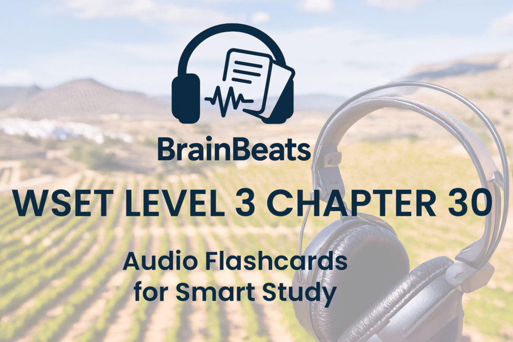 Master the bold, structured, and diverse world of Spanish wine with BrainBeats audio flashcards for Chapter 30 of the WSET Level 3 Award in Wines: Spain.