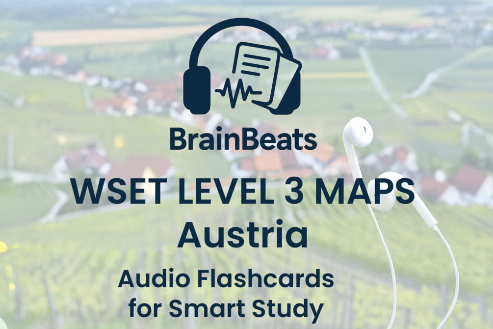 Ace your Austrian wine geography with this map-based BrainBeats study kit tailored to the WSET Level 3 Award in Wines. Designed for smart repetition and location recall.