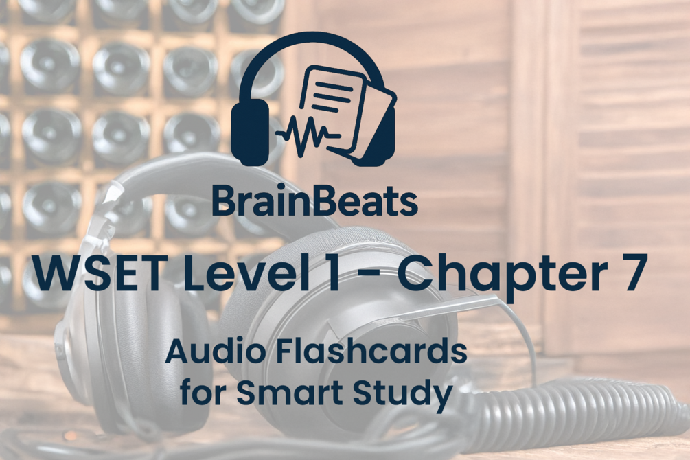 You'll get an audio-first flashcard pack for Chapter 7 of WSET Level 1, with 70 audio questions, printable Q&A, and a full learning sheet. Ideal for mastering the essentials of wine storage and service—anytime, anywhere.
