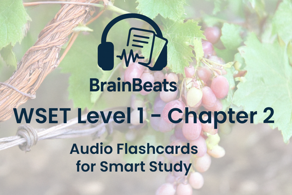 You'll get an audio-first flashcard pack for Chapter 2 of WSET Level 1, with printable Q&A and a study sheet. Ideal for multitasking learners.