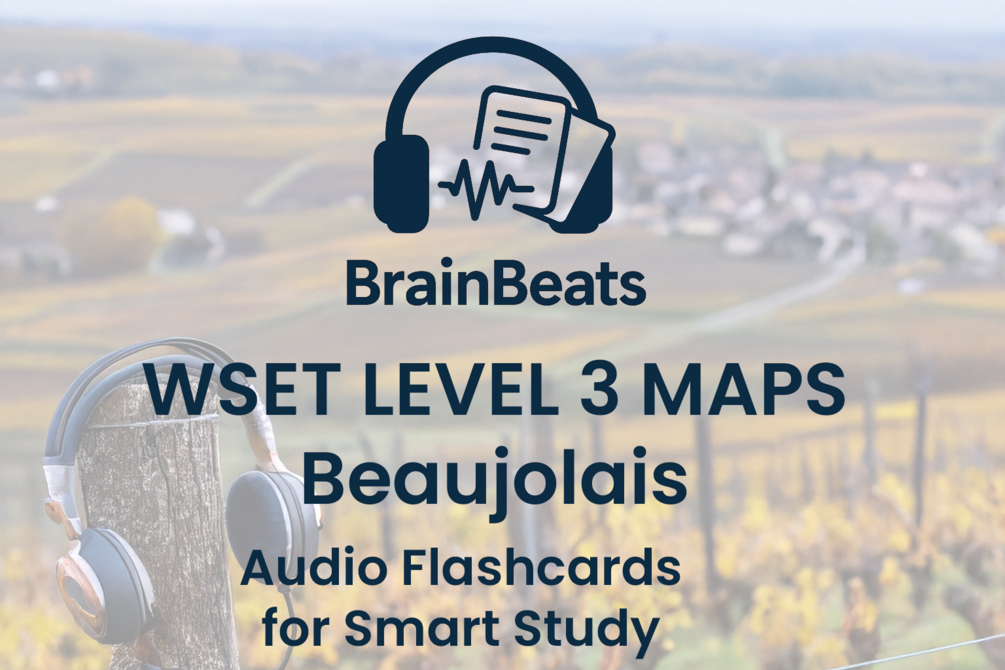 Explore the hillside vineyards and Crus of Beaujolais with this targeted BrainBeats audio and print study pack, created to support WSET Level 3 Award in Wines candidates.