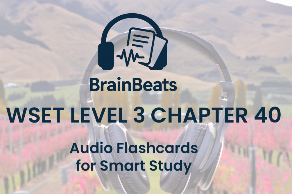 Crisp, vibrant, and world-renowned — master New Zealand wine with BrainBeats audio flashcards for Chapter 40 of the WSET Level 3 Award in Wines: New Zealand.